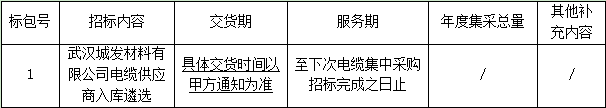 1.1項目名稱:武漢城發(fā)材料有限公司電纜供應商入庫遴選
